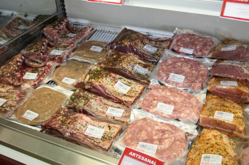 As carnes são embaladas a vácuo em porções de 600 grs ou múltiplo de kg.